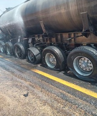السيطرة على احتراق إطارات صهريج محمل بحامض الفسفوريك ( شاهد )