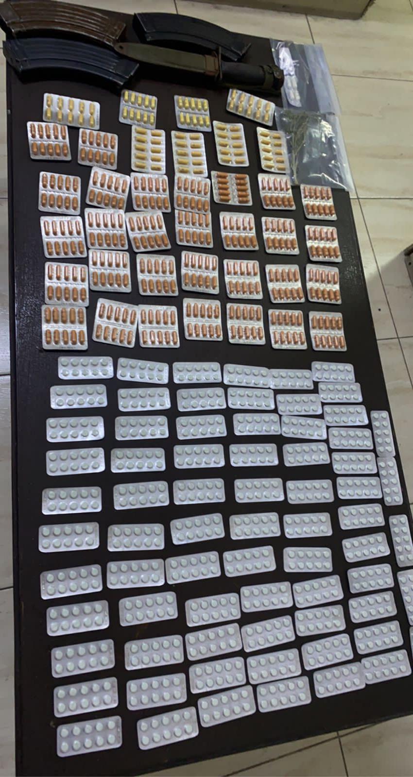 وفي مداهمة أخرى القى العاملون في إدارة مكافحة المخدرات القبض على مطلوب بتجارة المواد المخدرة بعد تحديد مكانه، حيث ضبط بحوزته كمية كبيرة من الحبوب المخدرة.