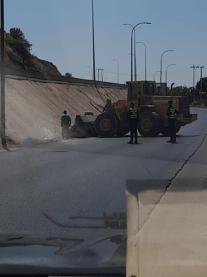 وتم إزالة العوائق والتحفظ على العاملين بالموقع ومنعهم من إتمام العمل لحين تحقيق شروط السلامة العامة ومنعاً لحدوث اي طارئ جراء الاعمال الإنشائية التي قد تؤثر على مستخدمي الطريق.