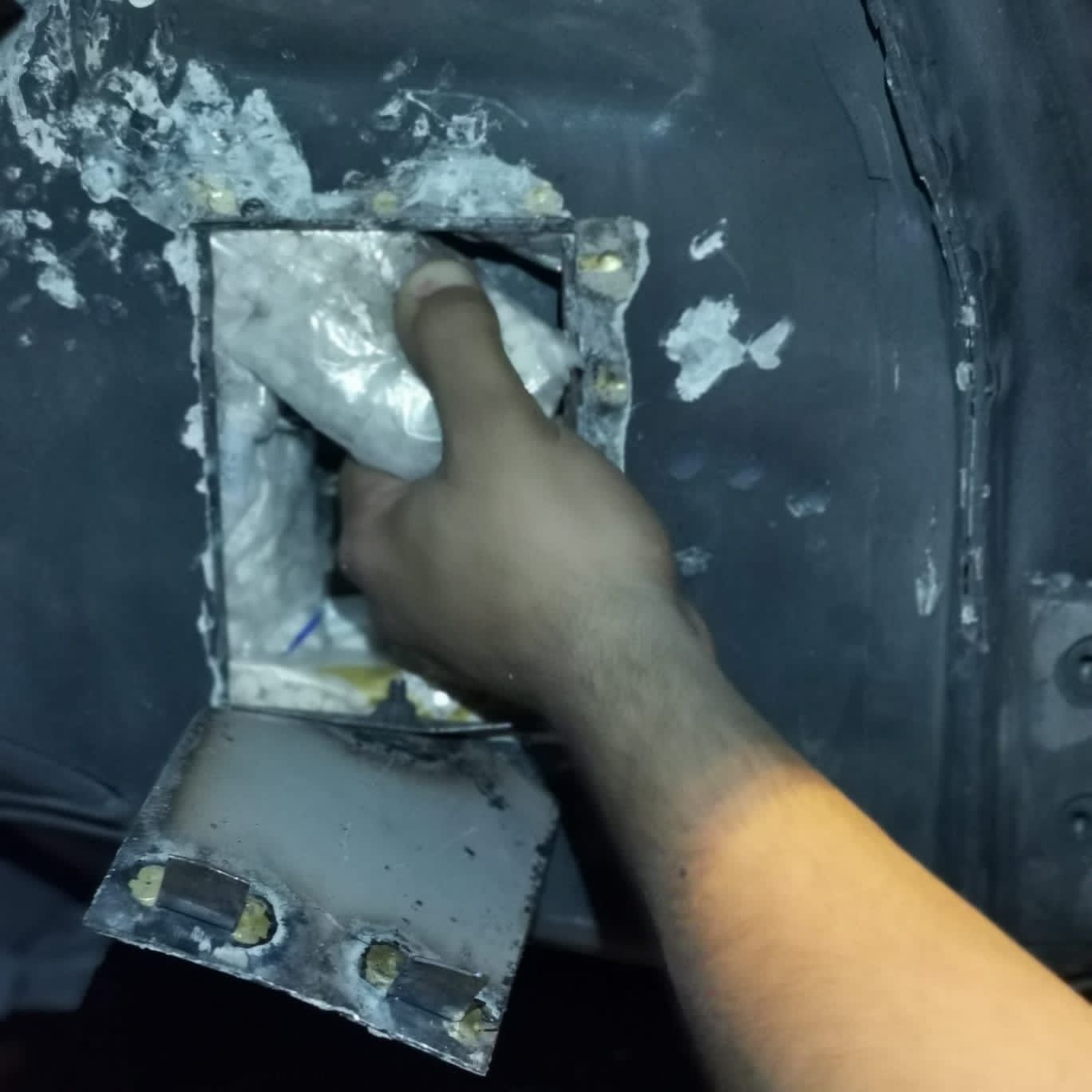 فيما جرى في القضية الثانية ضبط مركبة أخرى وسائقها بعد معلومات وردت عنها ، ليتم بعد تفتيشها العثور على 54 الف حبة مخدرة أُخفيت بمخابئ سرية في قطع ميكانيكية في المركبة .