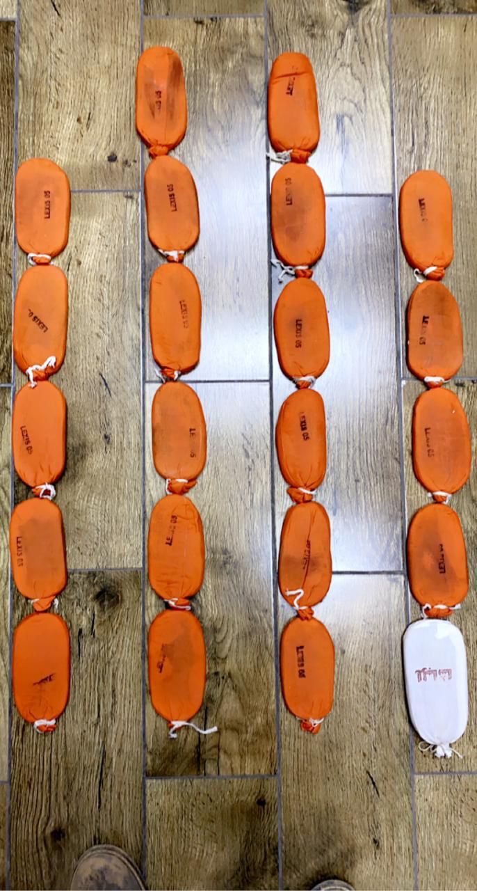 كما وأُلقي القبض في محافظة المفرق كذلك على مروجَين للمواد المخدرة اثناء قيامهما بمحاولة بيع كمية من الحشيش المخدرة ، وجرى بعد ذلك تفتيش المكان الذي يخزنان به المواد المخدرة وضُبط بداخله 22 كفاً من مادة الحشيش المخدرة.