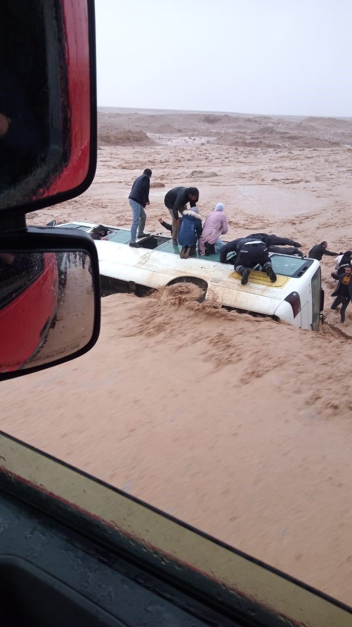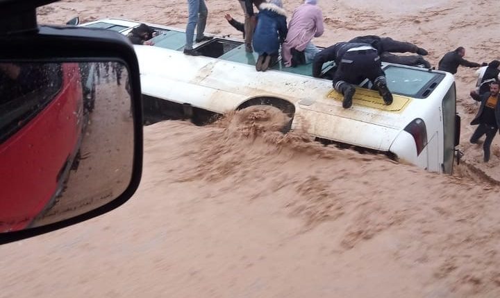وكالة الناس – انجرفت حافلة نقل عام متوسطة، تقل عددا من الطلاب، الاثنين، على طريق جامعة الحسين بن طلال-أذرح، مما تسبب بانقلابها في سيل جارف من مياه الأمطار .