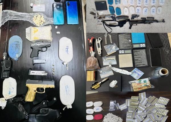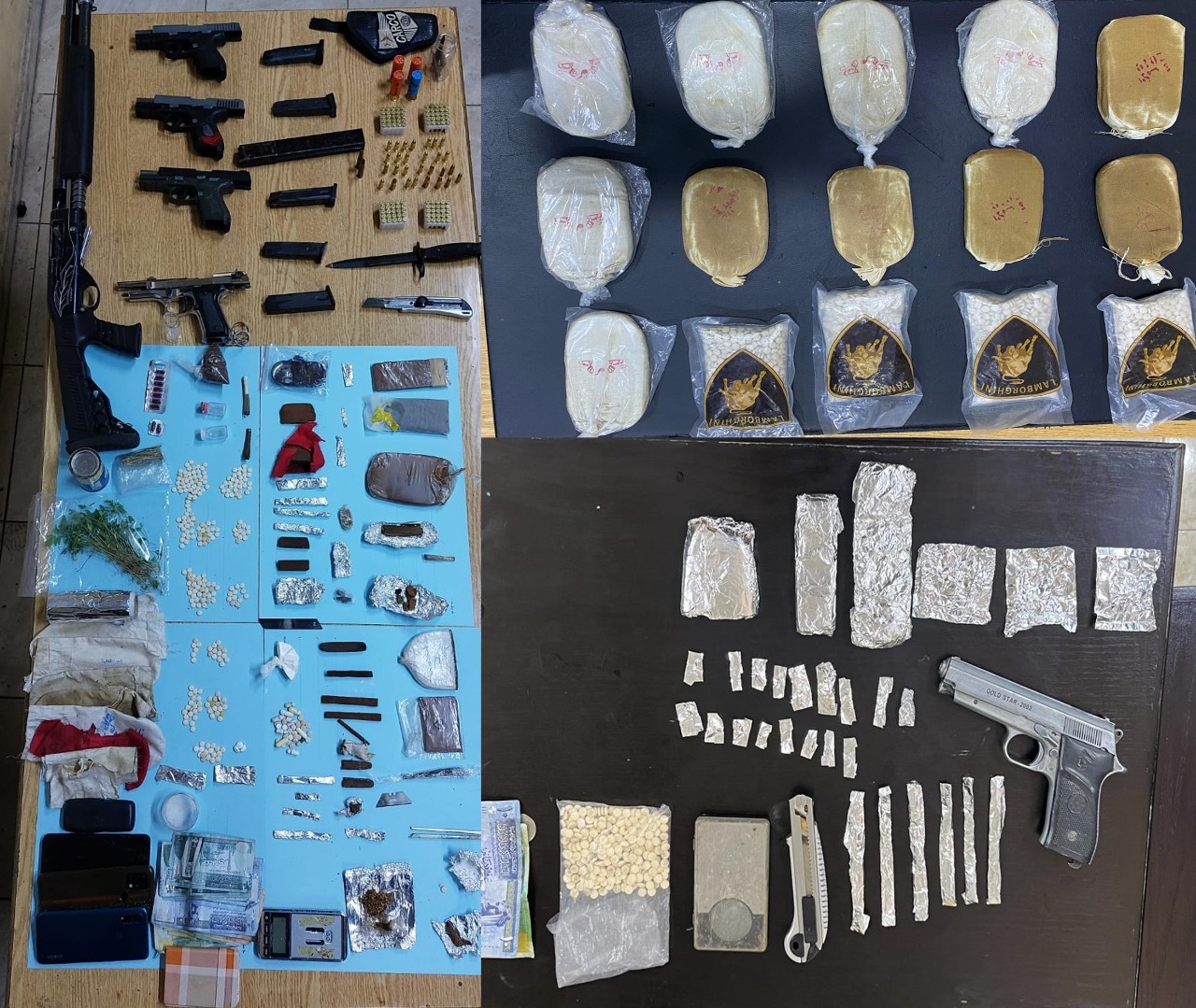 وفي محافظة البلقاء، ألقي القبض على شخصين من مروجي المخدرات في مداهمتين منفصلتين وضبط بحوزتهما كميات من المواد المخدرة المعدة للبيع وأسلحة نارية.