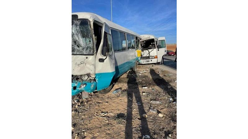 وكالة الناس – أصيب 20 شخصا بحادث تصادم وقع بين 4 حافلات قرب الباب الشمالي لجامعة مؤتة.