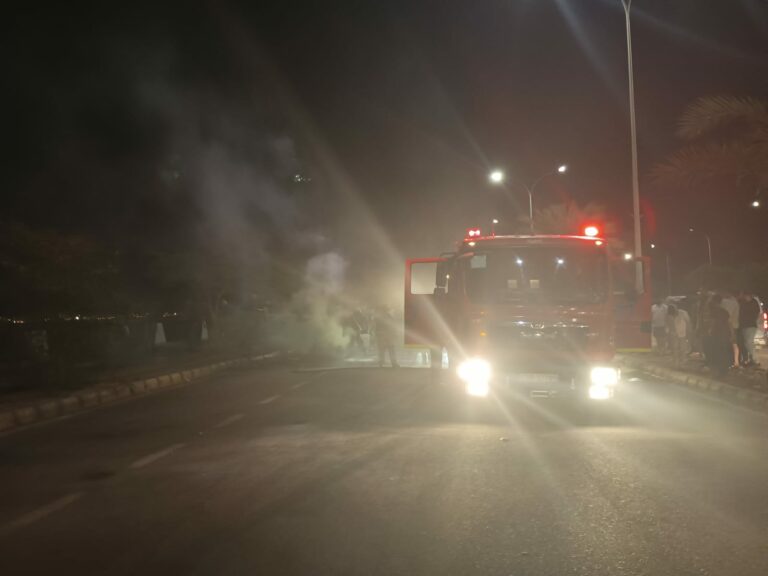 وكالة الناس – نشب حريق مفاجئ مساء اليوم الأحد، لمركبة تقودها إحدى السيدات برفقة أبنائها، بالقرب من كورنيش شاطئ العقبة.