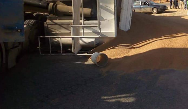 تدهور مركبة شحن محملة بالقمح على طريق النقب