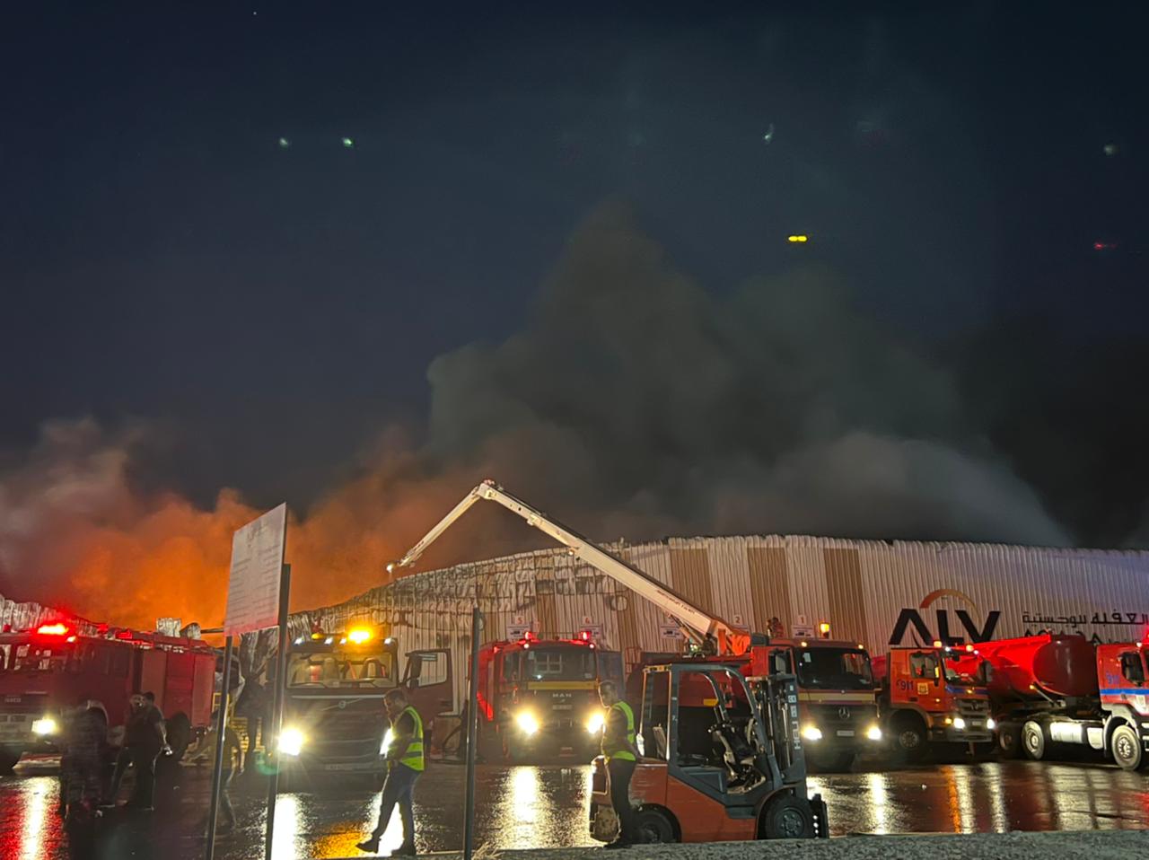 بالصور .. السيطرة على حريق القرية اللوجستية في العقبة