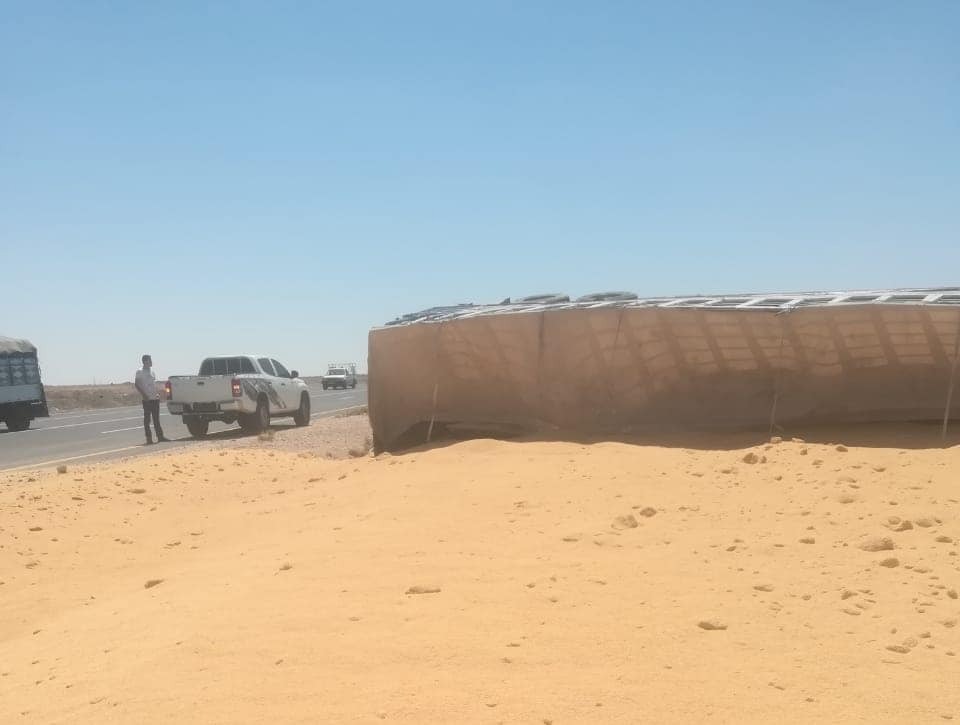 تدهور مركبة شحن يغلق الصحراوي جزئيا