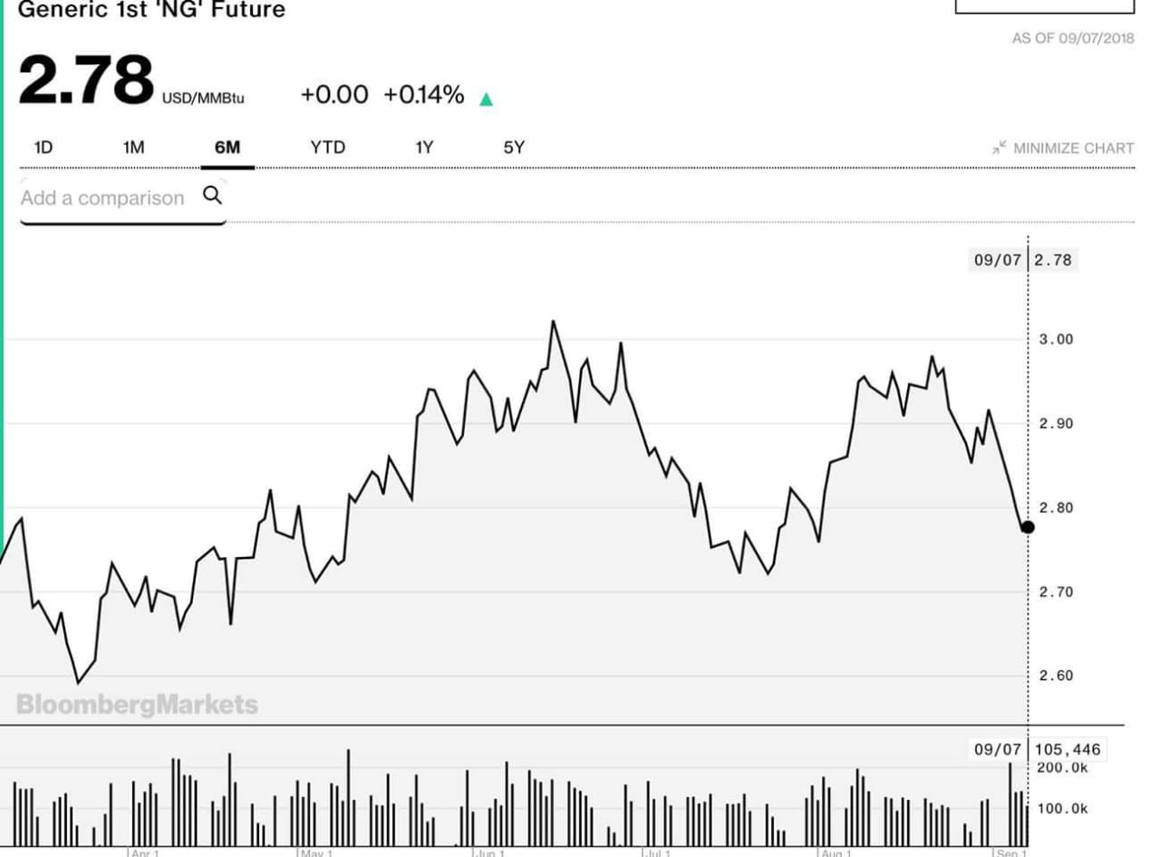 ونشر عقل رسومات بيانية توضح التغير في سعر الغاز الطبيعي على النحو التالي: