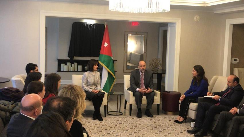 وأشار إلى انه تم التوصل إلى تطوير الاتفاق مع الاتحاد الأوروبي لتحسين شروط قواعد تبسيط شهادات المنشأ وتعزيز فرص الصادرات الاردنية بشكل غير مسبوق وكذلك اتفاقية مع امريكا من شأنها تحسين الاوضاع وخلق فرص عمل وانعاكسها على مستوى المعيشة للاردنيين. واكد رئيس الوزراء ان هناك ما يدفع للتفاؤل بالمستقبل واسستثمار الفرص الموجودة وان نسعى جميعا لتحسين الاوضاع. فيما تمحور حديث الجالية الاردنية خلال الاجتماع حول اوضاع الاردنيين المقيمين في اميركا من النواحي الاجتماعية والثقافية والتجارية، واكد رئيس الوزراء على ضرورة التواصل فيما بين الاردنيين المقيمين في امريكا وبين السفارة وايضا التواصل فيما بين المقيمين ببعضهم لتحسين اوضاعهم والتعرف اكثر على الاعمال والاستثمارات في الخارج.