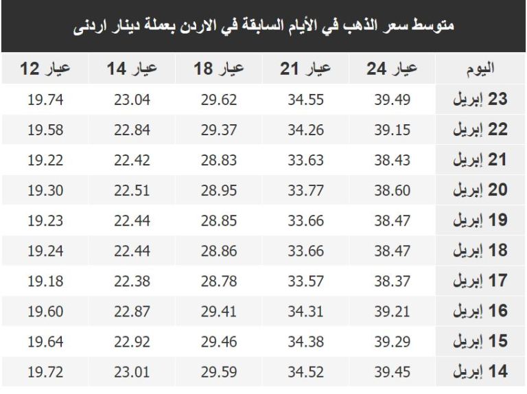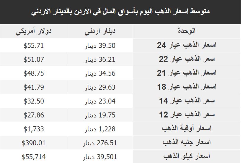 إرتفاع اسعار الذهب في الاردن