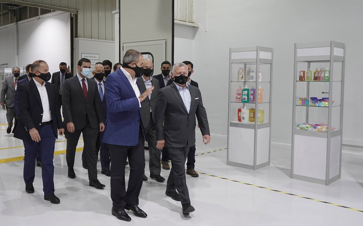 وعرض أمام جلالته مقطع فيديو يُلخّص مراحل تطور المجموعة التي تأسست في العام 1991م، وخططها المستقبلية للتوسع، وزيادة قدرتها التنافسية والتصديرية إلى الأسواق الإقليمية والعالمية، ورافق جلالة الملك، رئيس الوزراء، ورئيس الديوان الملكي الهاشمي، ومستشار جلالة الملك للاتصال والتنسيق، ومستشار جلالة الملك للسياسات والإعلام، ووزير الصناعة والتجارة والتموين.