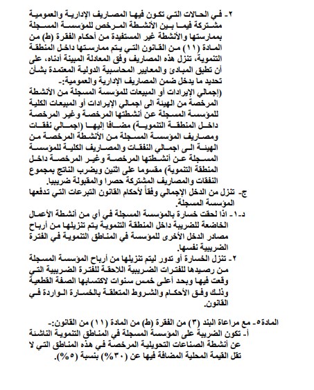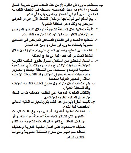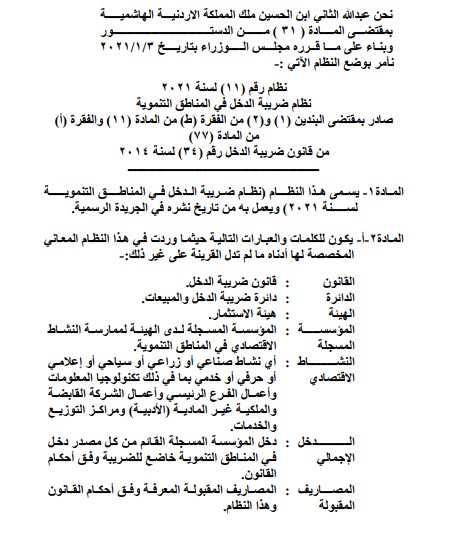 إرادة ملكية بنظام ضريبة الدخل في المناطق التنموية