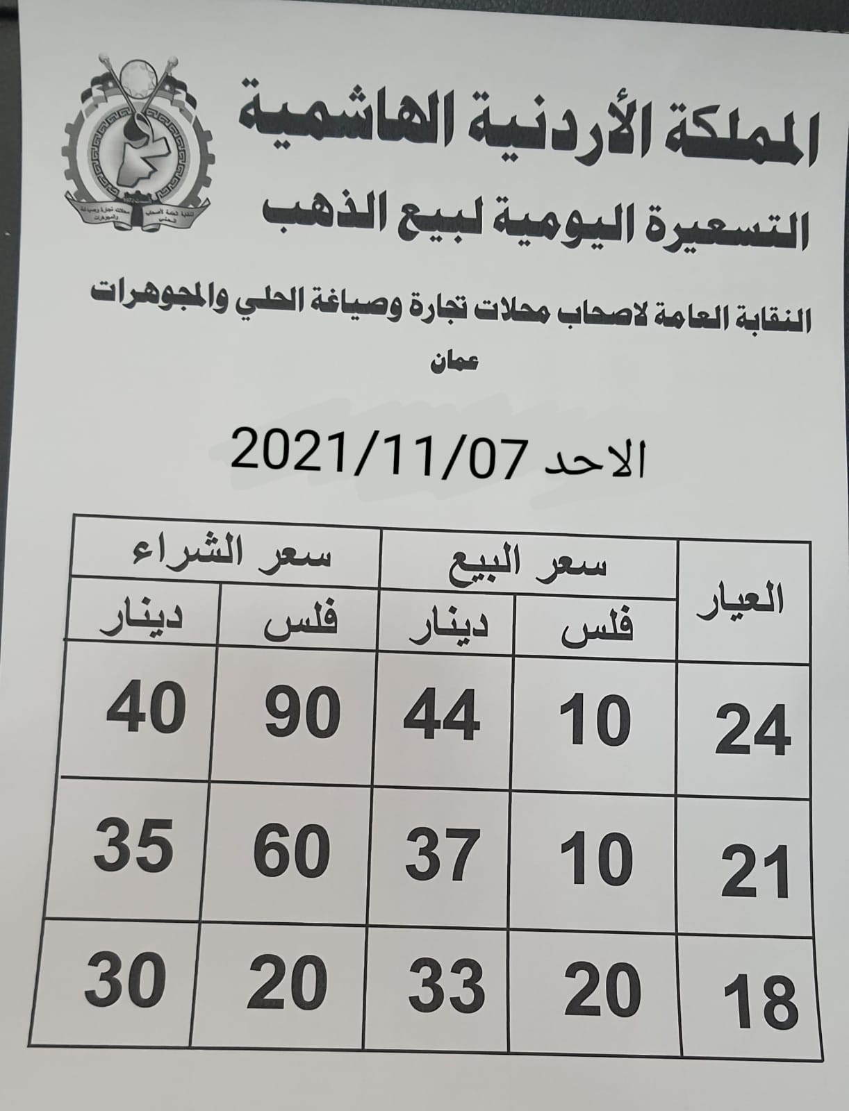 وبلغ سعر بيع الغرام من الذهب عياري 24 و18 لغايات الشراء من محلات الصاغة عند 44،10 و33،20 دينارا على التوالي.