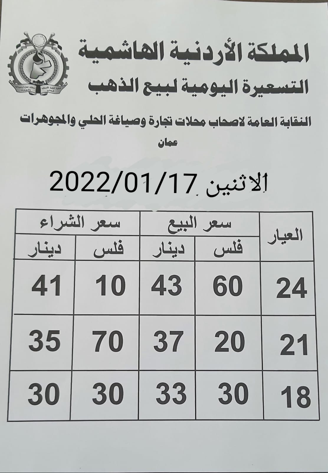 كما بلغ سعر الغرام من عيار 24 قيراط عند 43 دينارا و 60 قرشا، كما بلغ سعر عيار 18 عند 33 دينارا و 30 قرشا لغايات الشراء للمواطنين.