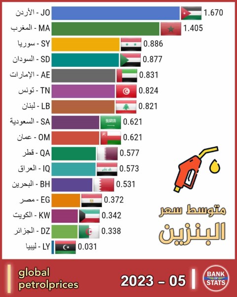 إليكم الإنفوغرافيك أدناه لمقارنة أسعار البنزين في الدول العربية: