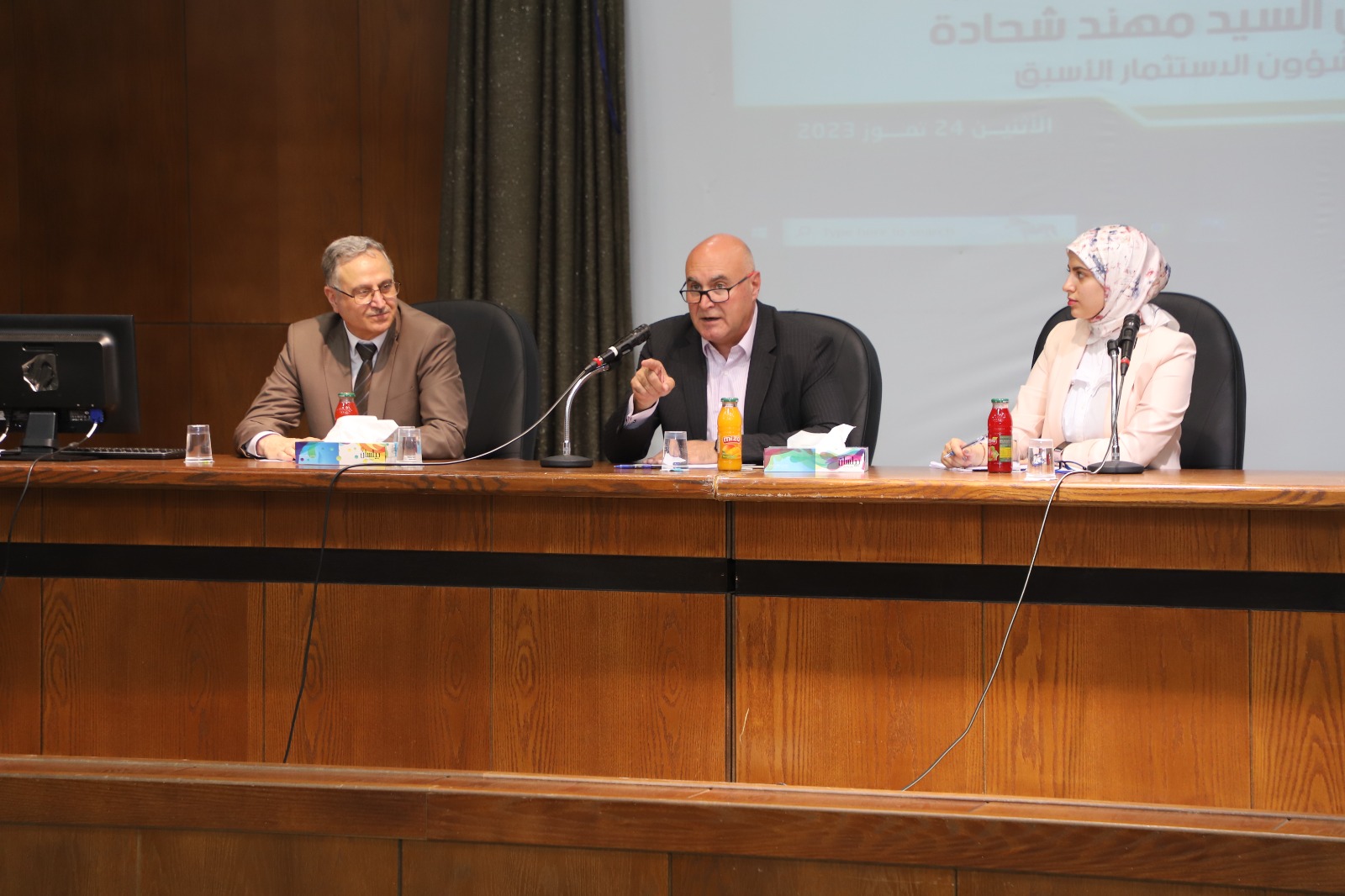 وفي نهاية الجلسة، أجاب شحادة على أسئلة واستفسارات الطلبة كما ودار نقاش موسع حول عدد من الموضوعات ذات العلاقة بالاستثمار.