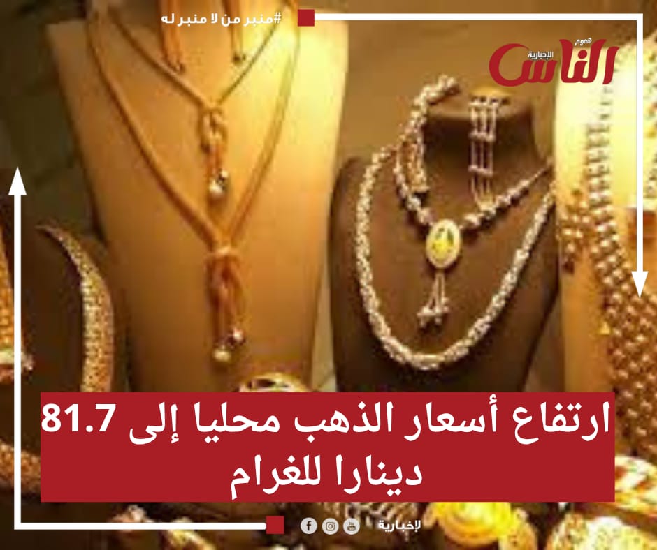 ارتفاع أسعار الذهب محليا إلى 81.7 دينارا للغرام