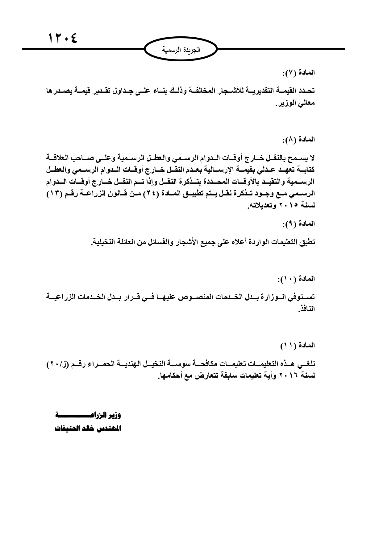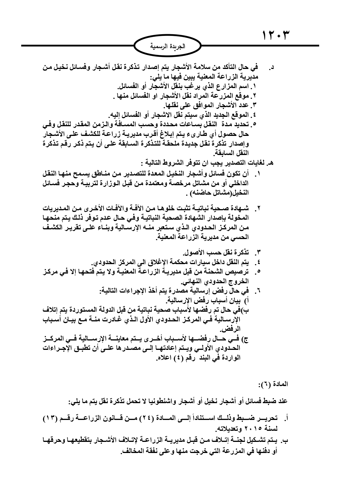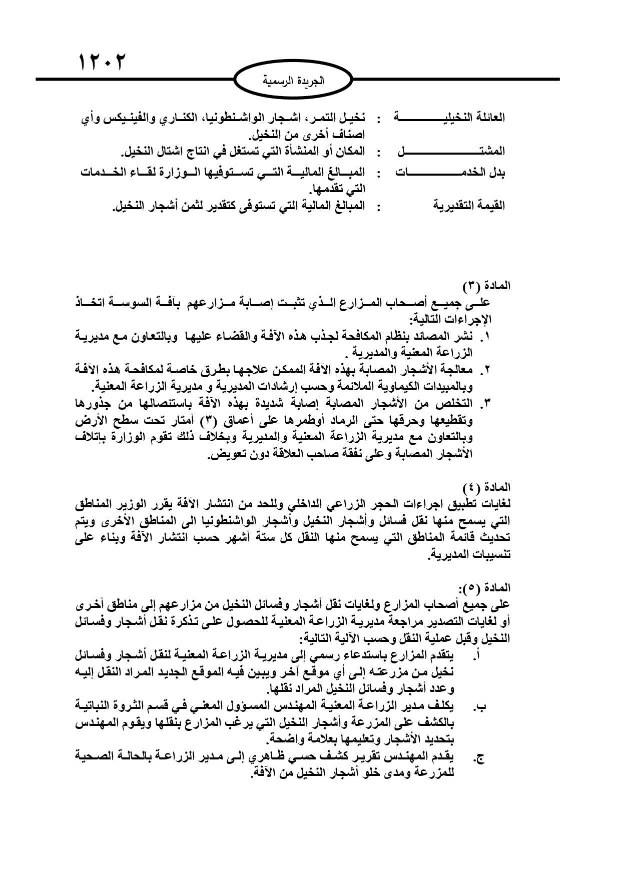 كيف تكافح سوسة النخيل الهندية الحمراء؟ .. الزراعة تصدر تعليمات On فبراير 1, 2022 Share وكالة الناس – صدر في عدد الجريدة الرسمية اليوم الثلاثاء، تعليمات مكافحة سوسة النخيل الهندية الحمراء، والصادرة بموجب قانون وزارة الزراعة. وتاليا نص التعليمات: