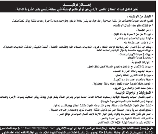 وظائف شاغرة لدى احدى هيئات القطاع الخاص