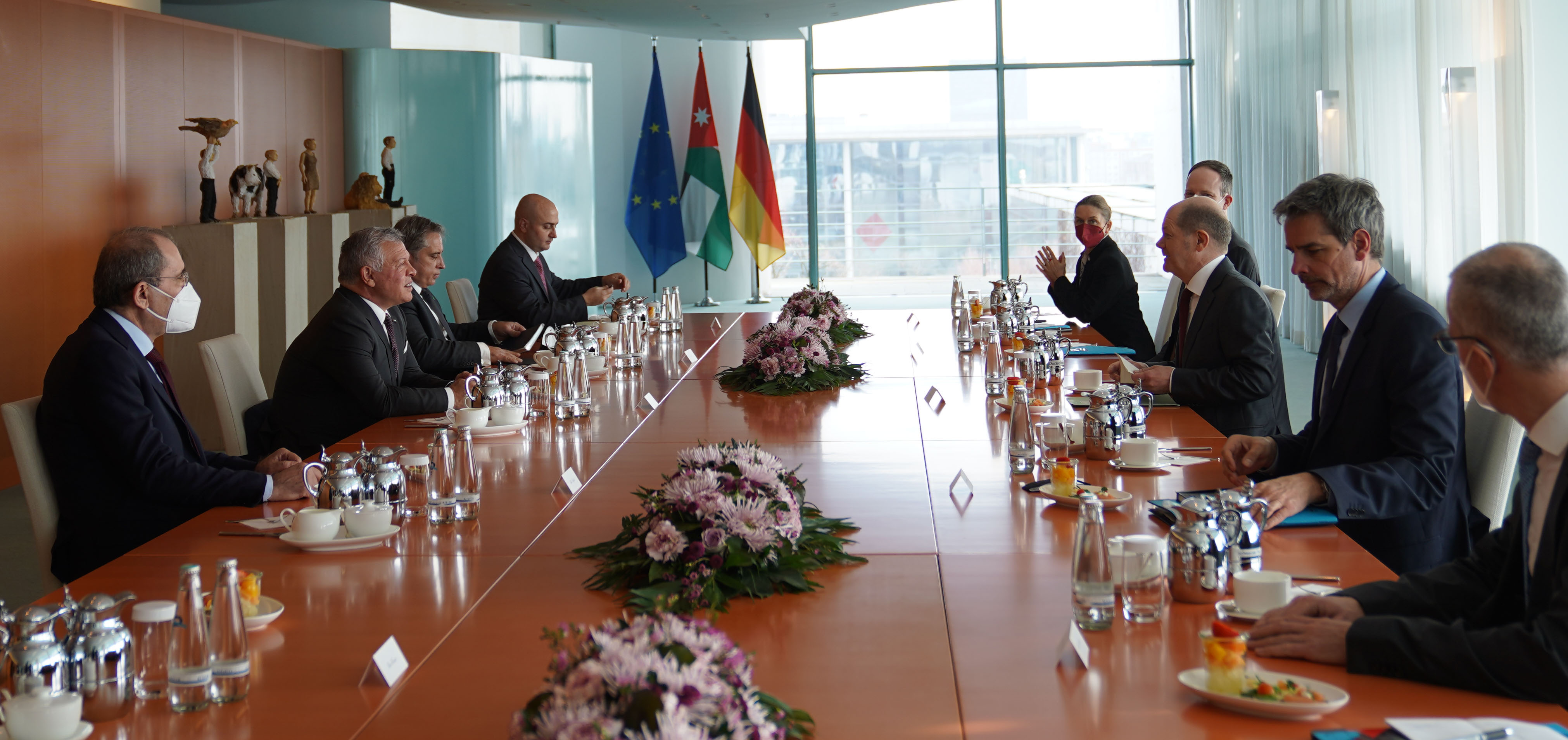 الملك يجري مباحثات مع المستشار الألماني شولتس ( صور ) On مارس 15, 2022 Share وكالة الناس – اجرى جلالة الملك عبدالله الثاني اليوم الثلاثاء مباحثات مع المستشار الألماني أولاف شولتس في مقر المستشارية الألمانية في برلين.