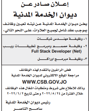 ديوان الخدمة المدنية يعلن عن وظائف بموجب عقد شامل لجميع العلاوات On مايو 24, 2022 Share وكالة الناس –