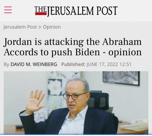 وتأتي هذه التصريحات في الوقت الذي التقى فيه بايدن جلالة الملك عبدالله الثاني مرتين والزيارة المرتقبة لبايدن للشرق الأوسط الشهر المقبل، الأمر الذي يجعل مهاجمة اتفاقيات ابراهام موضع شك أنه يتم بالتنسيق مع واشنطن، لذلك يجب على اسرائيل ان تكون مستعدة لمثل هذا الأمر.