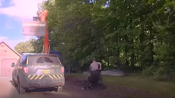 وكالة الناس – أظهر مقطع فيديو التقطته كاميرا مراقبة مثبتة داخل إحدى السيارات التابعة لشرطة ولاية فيرمونت الأمريكية، محاولة رجل منع ضباط الشرطة من اعتقال ابنه، باستخدام الجرافة.