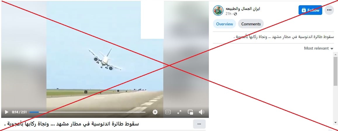 “سقوط طائرة إندونيسيّة في مطار مشهد” بإيران؟ إليكم الحقيقة