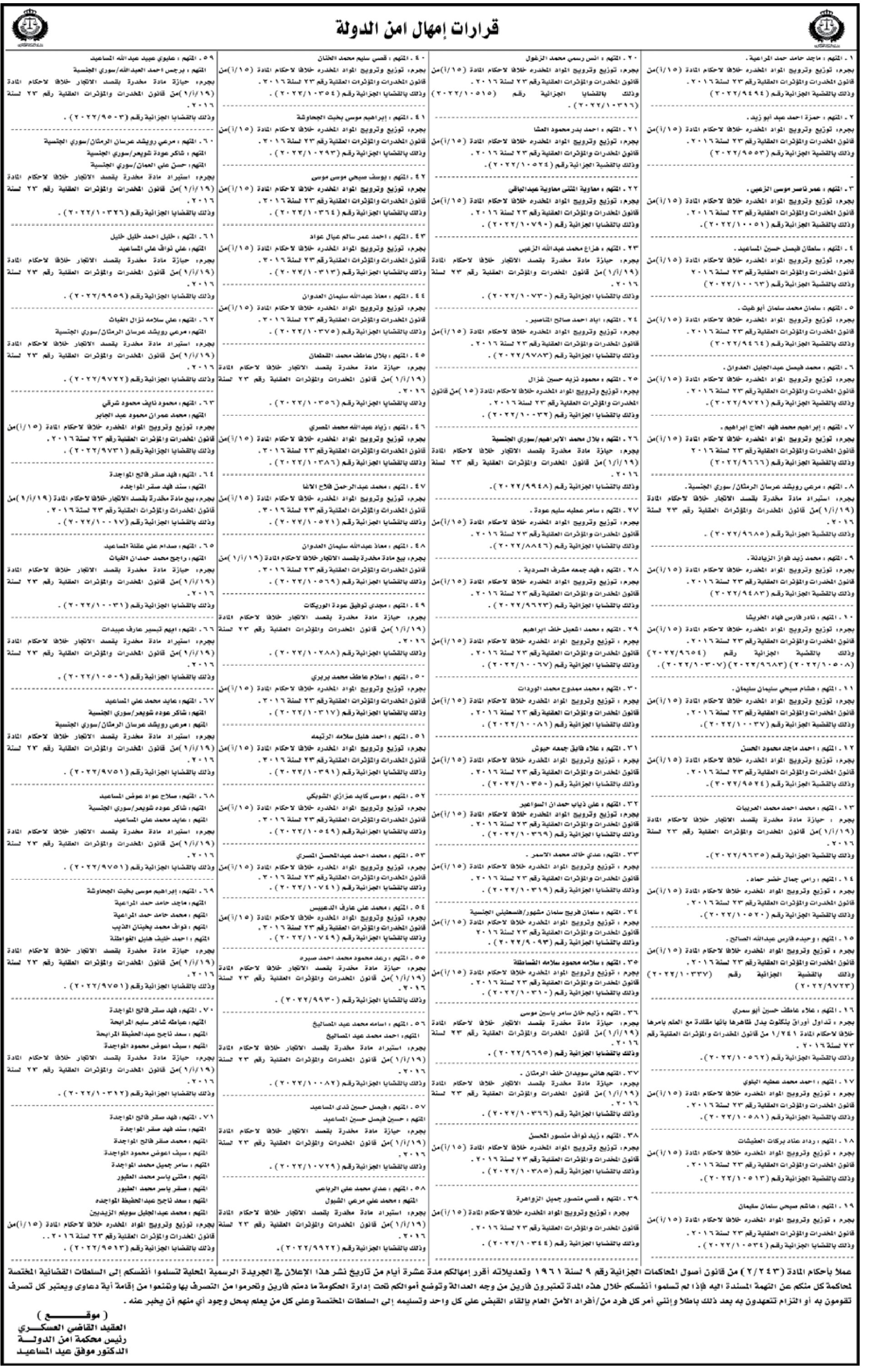 ونشرت المحكمة، أسماء المتهمين، عملا بأحكام المادة 243 /2 من قانون أصول المحاكمات الجزائية رقم 9 لسنة 1961.