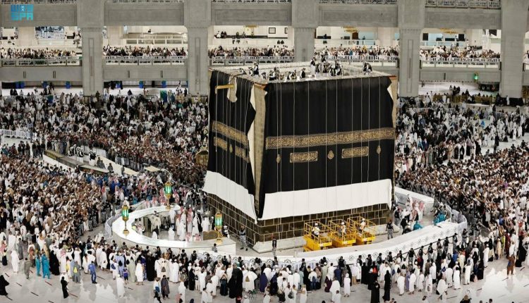استبدال كسوة الكعبة المشرفة في مكة المكرمة