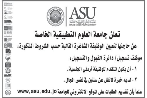 وظيفة شاغرة لدى جامعة العلوم التطبيقية الخاصة