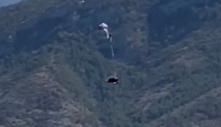وكانت هناك لقطات أخرى، جرى تصويرها من الأرض أظهرت مدى السقوط السريع للمظلي قبل أن يتدارك الأمر، حيث كان الهبوط سليما إلى حد كبير.