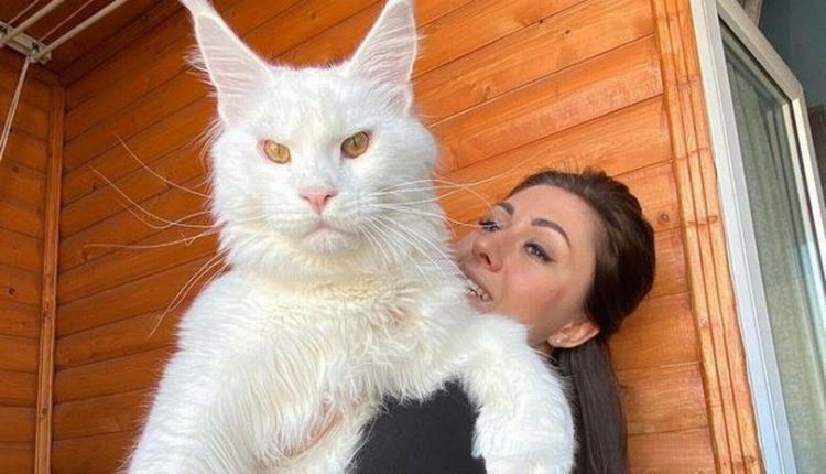 نمت قطة ضخمة يطلق عليها “الأكبر في العالم” إلى حد أنها يمكن أن تقف في نفس القامة مثل طفل يبلغ من العمر عامين، كادت يوليا مينينا، من روسيا ، كسر الإنترنت بعد مشاركة مقاطع فيديو وصور لقطتها الهرة المحبوبة، Kefir the Main Coon.