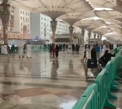 شاهد الفيديو أمطار الخير تهطل على المسجد النبوي في المدينة المنورة