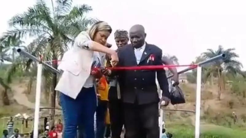 واجتمع مسؤولو جمهورية الكونغو الديمقراطية لفتح جسر المشاة رسمياً، والذي تم بناؤه لمساعدة السكان على عبور النهر، حيث كان الجسر المؤقت السابق قد انكسر وغرق أثناء الفيضانات.