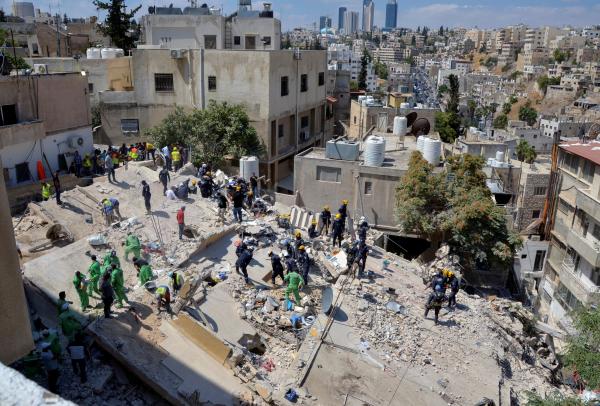 رفعت أمانة عمان الكبرى، بإشراف مديرية الأمن العام، ثلاثة آلاف متر مكعّب من الأنقاض من موقع البناية المنهارة في منطقة اللويبدة في عمّان.