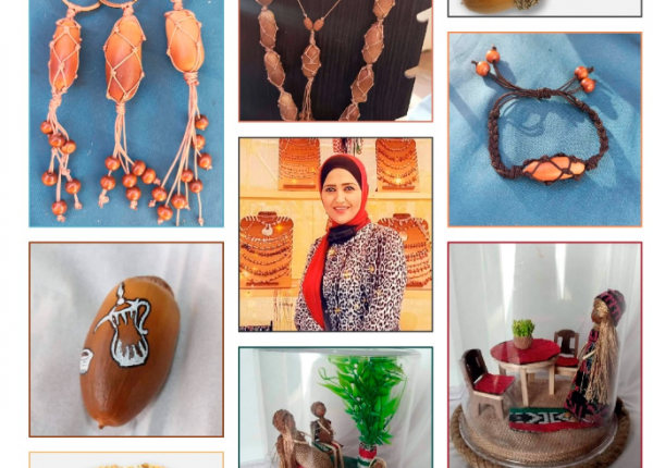 وتسعى إلى تشكيل مجسمات بشرية من معطيات وسطها البيئي، فتصنع قلائد وميداليات، ما يشكل عناصر دهشة للمتسوقين الذي يقبلون على معروضاتها بشغف كبير.