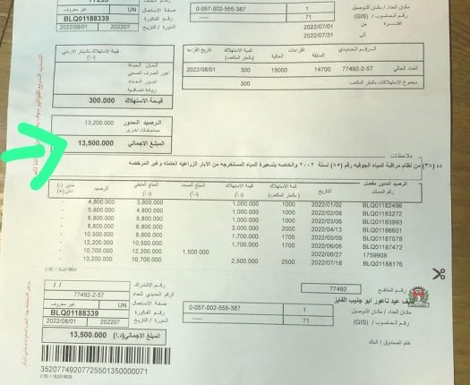 ونحن نرفق صور لفواتير المياه الصادرة عن وزارة المياه والري ليطلع الرأي العام عن الحقيقه كما هي.