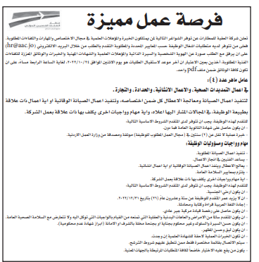 فرصة عمل مميزة لدى شركة العقبة للمطارات