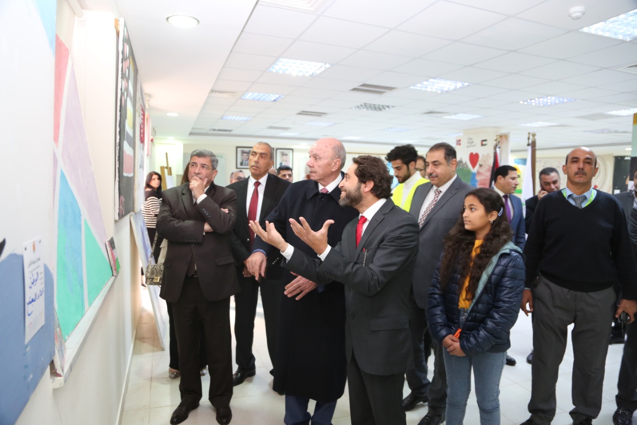 رئيس مجلس الأعيان دولة فيصل الفايز يفتتح معرض لوحة الأمل في جامعة الزيتونة الاردنية