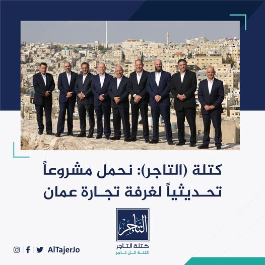 وأكدت كتلة (التاجر) أنها تضم فريقًا متجانسًا يمثل مختلف القطاعات التجارية والخدمية وقادر على إدارة المرحلة المقبلة، وعلى معرفة واسعة بهموم التاجر والمزارع والصناعي والمستثمرين وأصحاب الأعمال الأردنيين والعرب والأجانب.