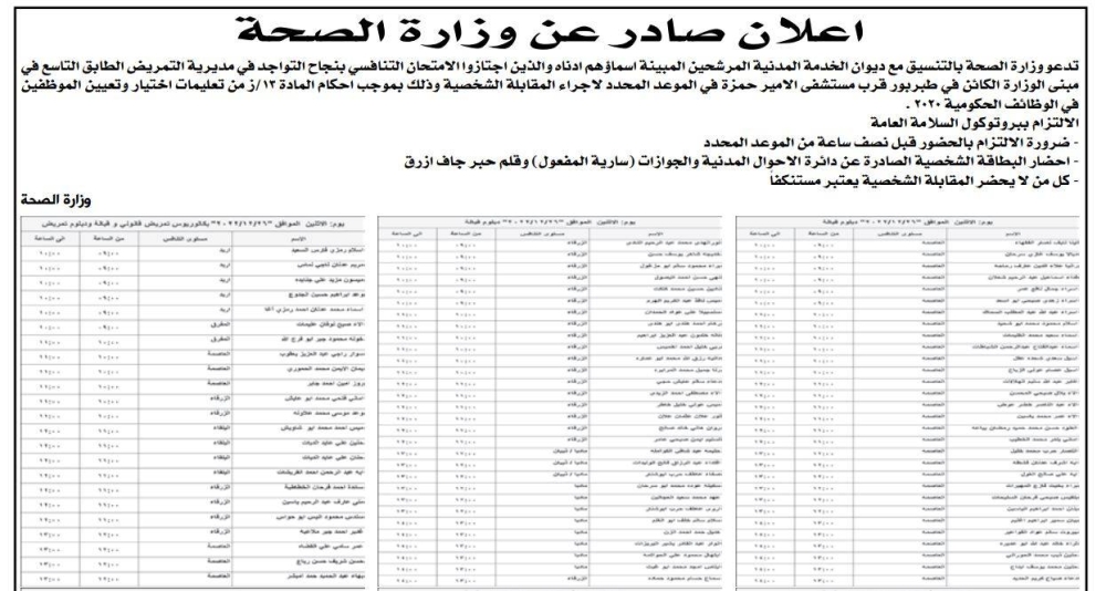 مؤسسات حكومية تعلن حاجتها لتعيين وتعبئة وظائف شاغرة On ديسمبر 21, 2022 Share وكالة الناس – أعلنت عدد من المؤسسات الحكومية اليوم الأربعاء، بالتنسيق مع ديوان الخدمة المدنية، عن حاجتها لتعيين وتعبيئة وظائف شاغرة وإجراء مقابلات شخصية. ودعت المؤسسات المدرجة أسماؤهم أدناه لاصطحاب الوثائق اللازمة للتعيين. وتالياً التفاصيل: