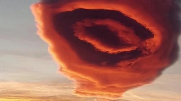وتم تصنيف السحابة على أنها عدسية، لكنها بدت أشبه بشيء غريب قادم من كوكب آخر، حيث تداول نشطاء على مواقع التواصل الاجتماعي صورا وفيديوهات مذهلة للسحابة، التي ظهرت باللون الأحمر الفاتح، مع دائرة خارجية ودائرة داخلية، تفصل بينهما حلقات داكنة.