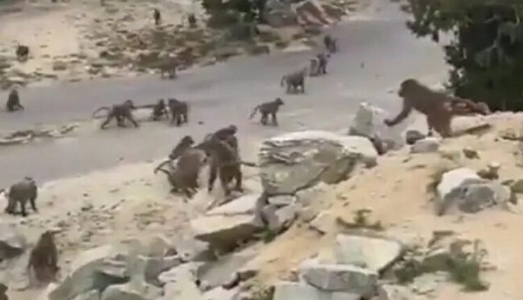 ووثق المقطع عشرات القردة تتشاجر مع بعضها البعض وتهاجم أحد المنتجعات، وسط حالة من الهرج والخوف من الأهالي.