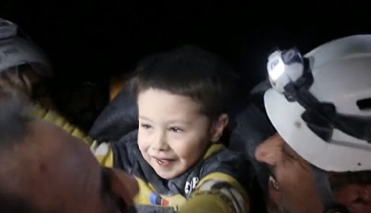 مبتسماً ويداعب من حوله… هكذا خرج الطفل السوري كرم من تحت الأنقاض (شاهدوا الفيديو)