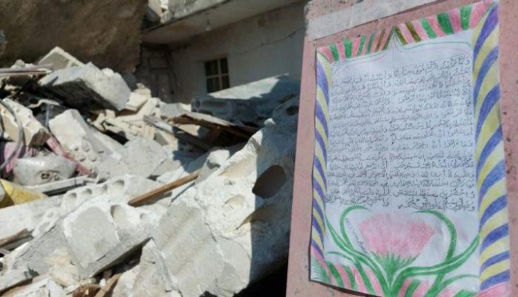 ووفقا للدفاع المدني السوري عبر حسابه على موقع “فيسبوك”، كتبت الشابة السورية أبياتا باكية من الشعر وضعتها على جدار البيت المنهار.