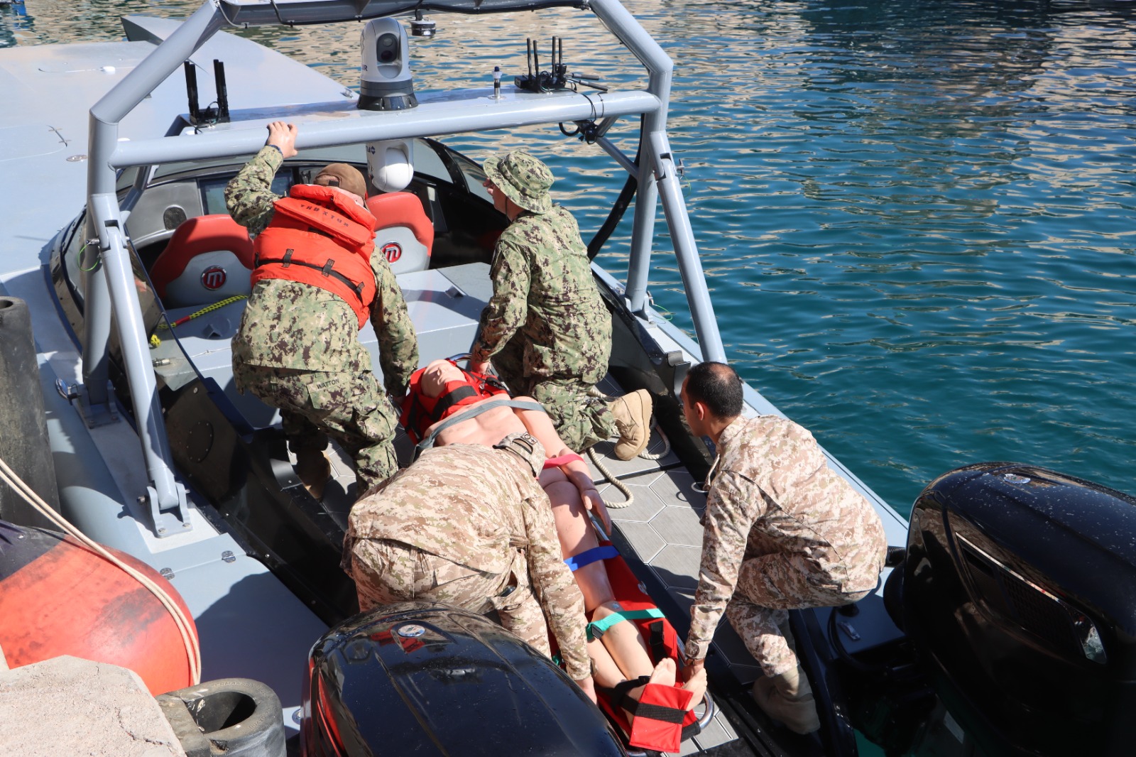 ويهدف التمرين إلى توظيف الأنظمة المسيرة في مسرح العمليات الدفاعية البحرية وتعزيز منظومة الأمن البحري من خلال فرق التفتيش واقتحام السفن (VBSS)، من خلال المركز الأردني للأنظمة المسيرة (J-ROC) في قيادة القوة.