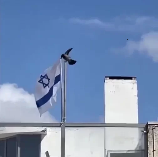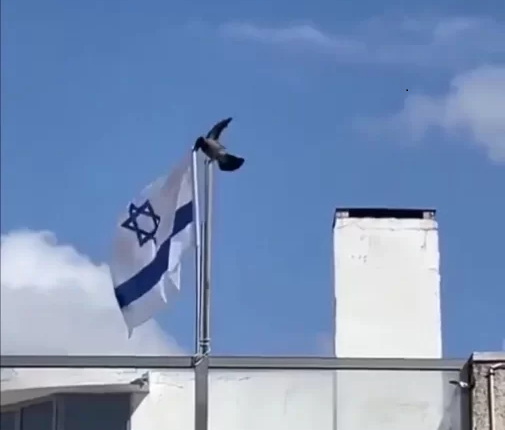 وكالة الناس – تداول رواد مواقع التواصل الاجتماعي مقطع فيديو طريفا لغراب وهو يقوم بنزع علم إسرائيل من عمود معلق عليه، فوق سطح إحدى البنايات، ويلقيه أرضا.