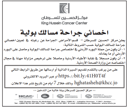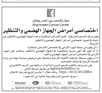 وظائف شاغرة لدى مركز الحسين للسرطان